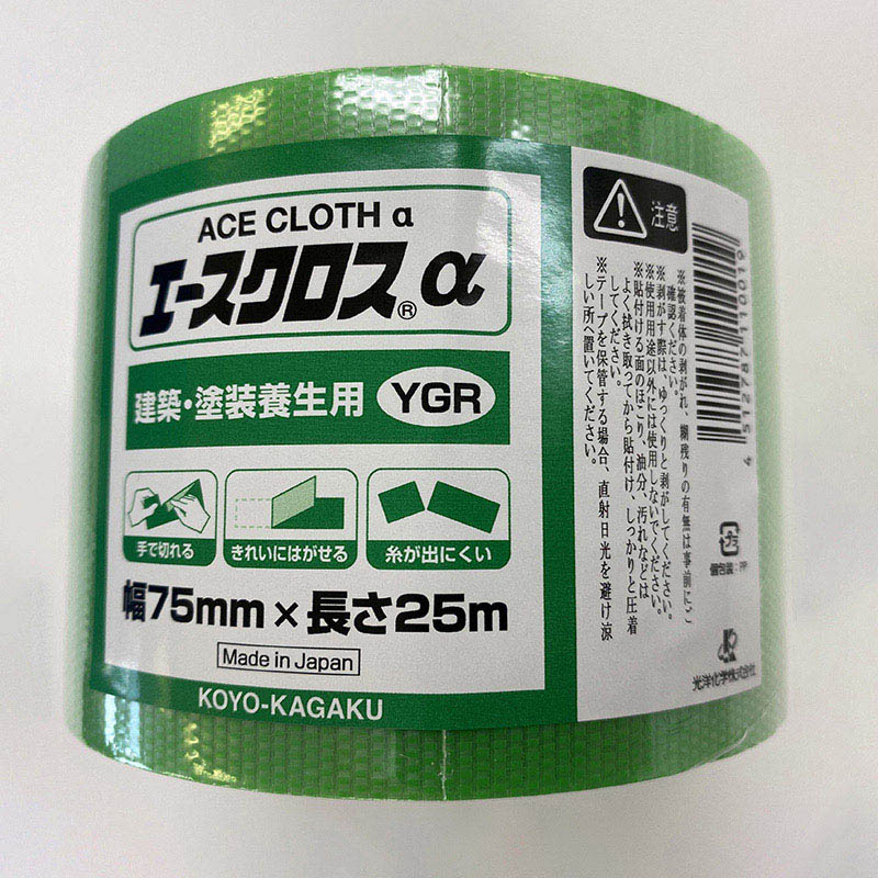 光洋化学 養生テープ エースクロスα YGR 幅75mm×長さ25m 緑 1巻(ご注文単位24巻)【直送品】