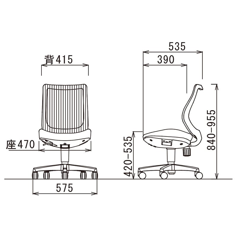 幅575×奥行535×高さ840~955mm/座面高:420~535mm