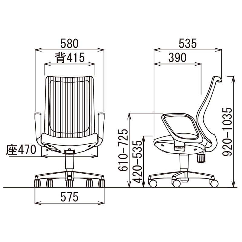 幅580×奥行535×高さ840~955mm/座面高:420~535mm