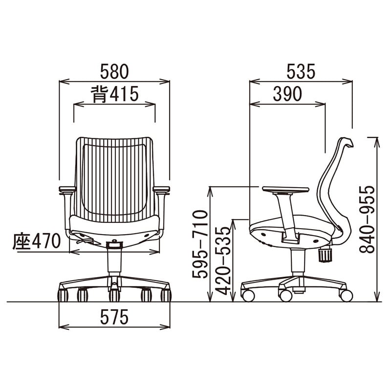 幅580×奥行535×高さ840~955mm/座面高:420~535mm