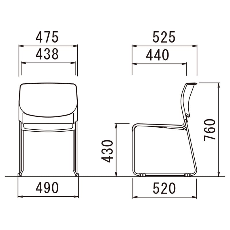 幅490×奥行525×高さ760mm、座面430mm