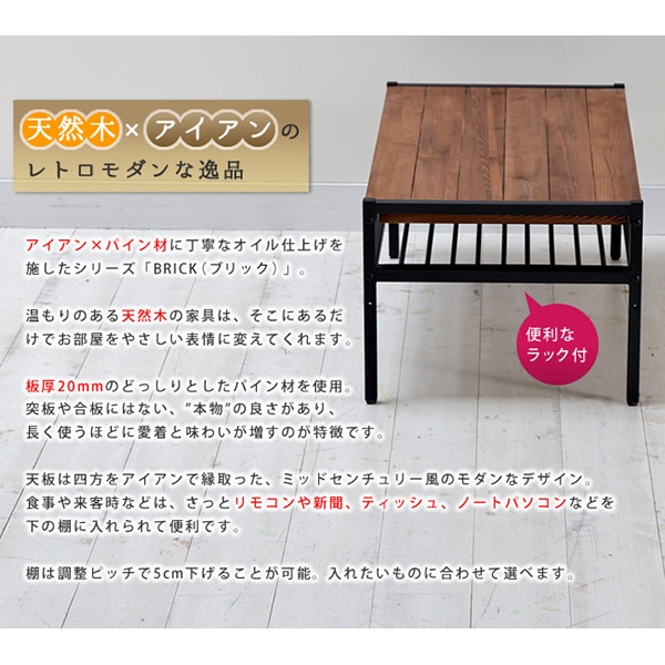 住まいスタイル ブリック 天然木製リビングテーブル ブラウン PT-900BRN 1台(ご注文単位1台)【直送品】