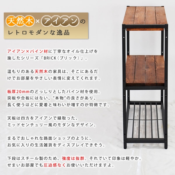 住まいスタイル ブリック 天然木製スリムラック 3段 PR-860SL-3BRN 1個(ご注文単位1個)【直送品】