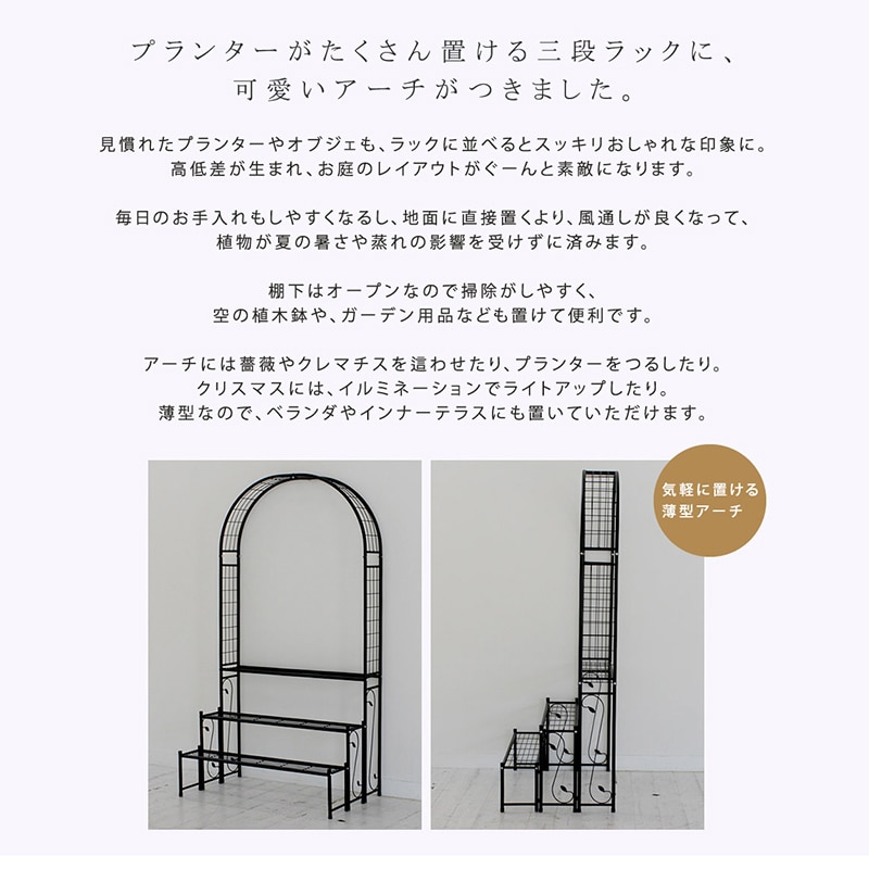 住まいスタイル アーチ付フラワーラック ブラック IA-FR002BLK 1台(ご注文単位1台)【直送品】