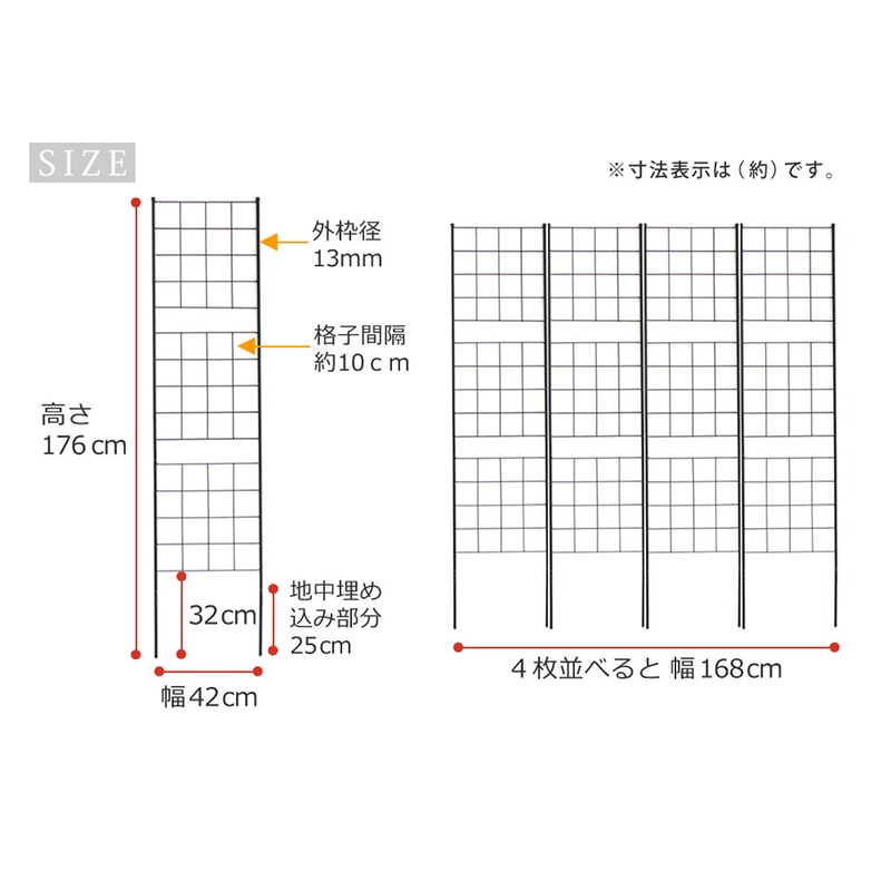 住まいスタイル アイアンフェンス グラフ 高さ176cm スリム ブラック 4枚組 IF-GR025-4P-BLK 1セット(ご注文単位1セット)【直送品】