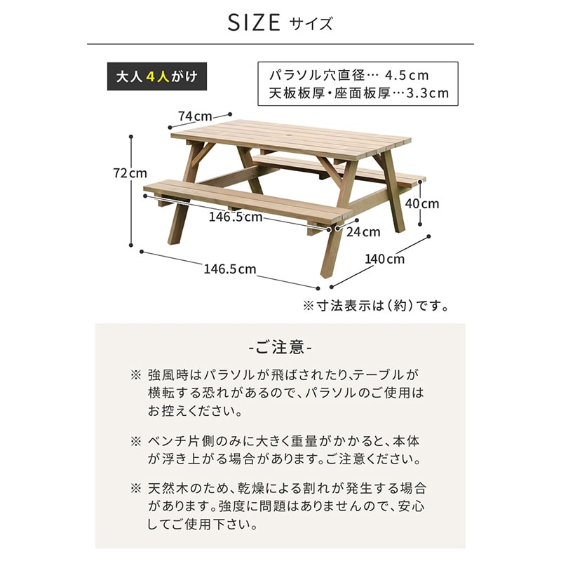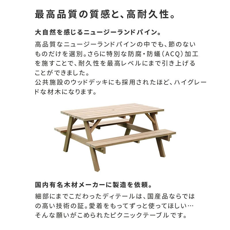 住まいスタイル 日本製 ニュージーランドパインピクニックテーブル 防腐加工 NKPM-147NTU 1台(ご注文単位1台)【直送品】