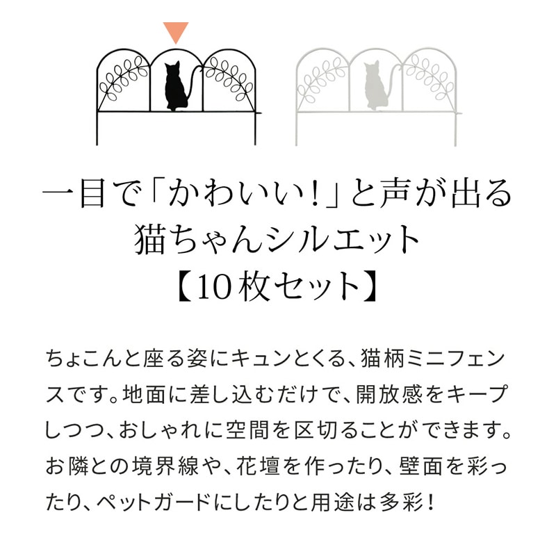 住まいスタイル アイアンフェンス ミニ 猫 10枚組 ブラック NK7238-10P-BLK 1セット(ご注文単位1セット)【直送品】