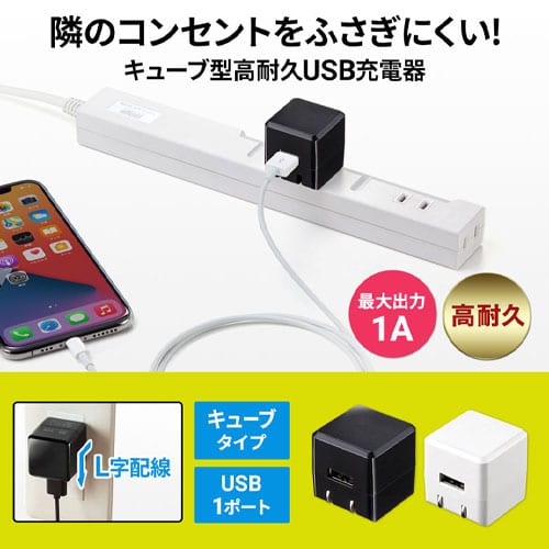 エスコ EA940CD-201D AC100-240V/USB充電器(高耐久タイプ/キューブ型) 1個 (ご注文単位1個)【直送品】