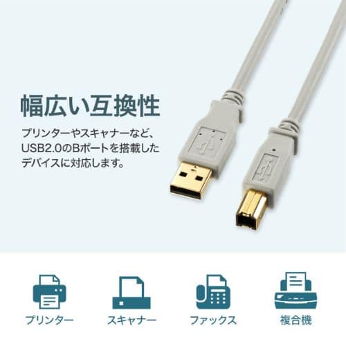 エスコ EA764AJ-74A 1.5m USBケーブル(A-B/2.0対応/金メッキ/グレー) 1個 (ご注文単位1個)【直送品】