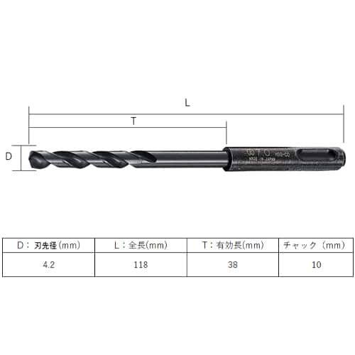 エスコ EA824CT-4.2 4.2x118mm 鉄工用ドリル(SDS/Co-HSS) 1本 (ご注文単位1本)【直送品】