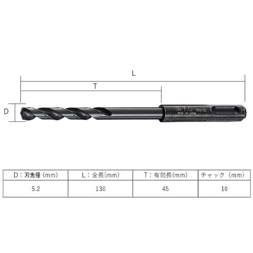 エスコ EA824CT-5.2 5.2x130mm 鉄工用ドリル(SDS/Co-HSS) 1本 (ご注文単位1本)【直送品】