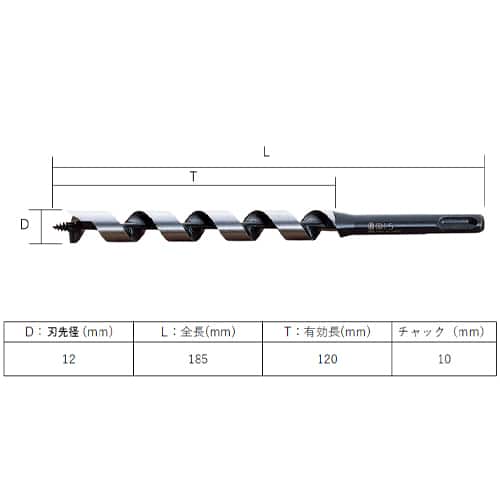 エスコ EA824XA-12 12.0x185mm 木工用ドリルビット(SDSプラス) 1本 (ご注文単位1本)【直送品】