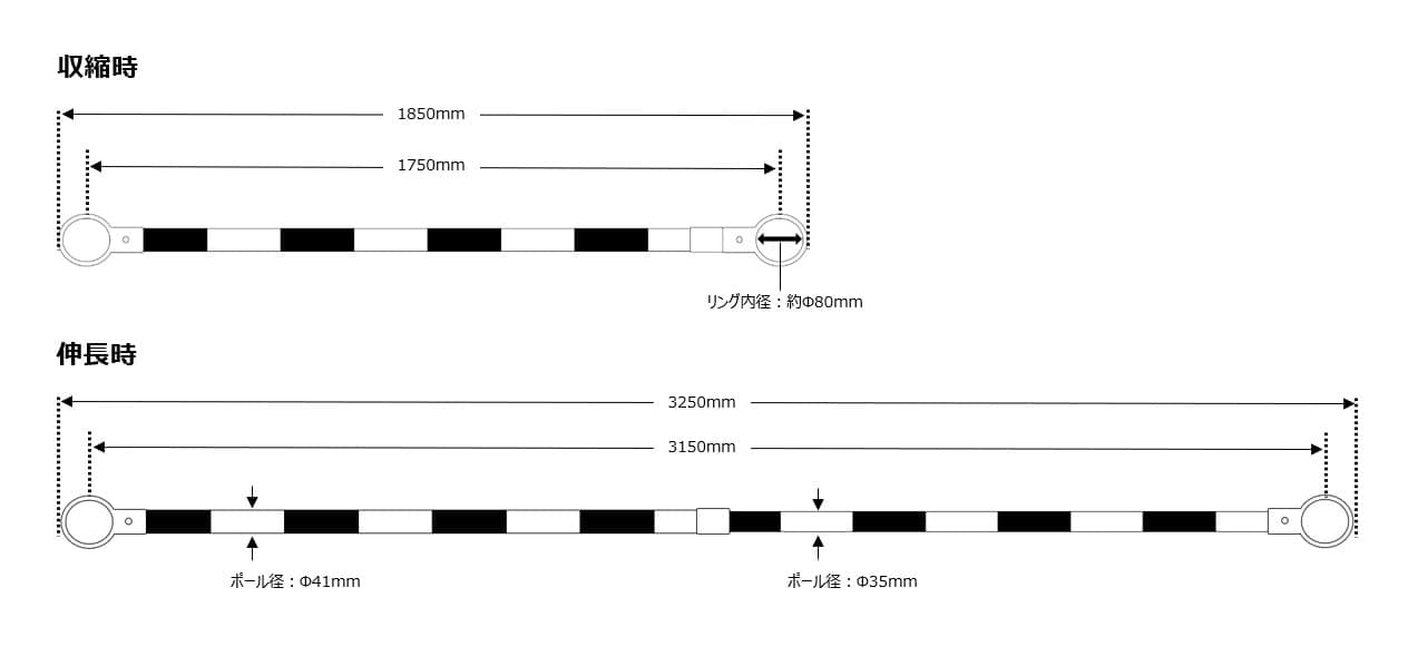 エスコ EA983FV-250S 伸縮ガードバー(1.85-3.25mトラ5本/自立バッグ付 1セット (ご注文単位1セット)【直送品】