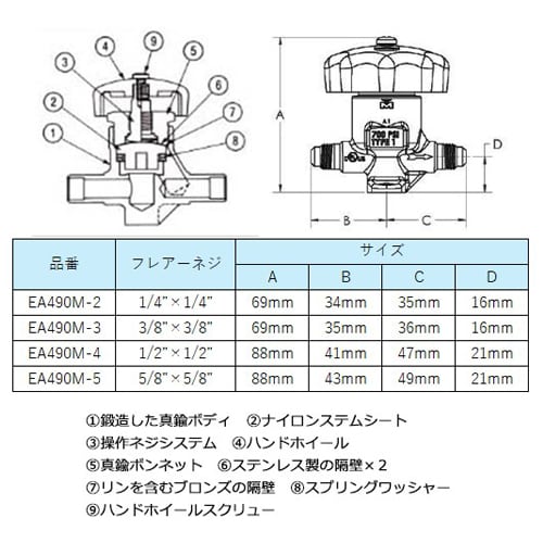 エスコ EA490M-5 F5/8xF5/8パックレスバルブ 1個 (ご注文単位1個)【直送品】