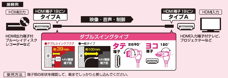 エスコ EA940PM-66 1.0m HDMIケーブル(縦横Wスイング) 1本 (ご注文単位1本)【直送品】