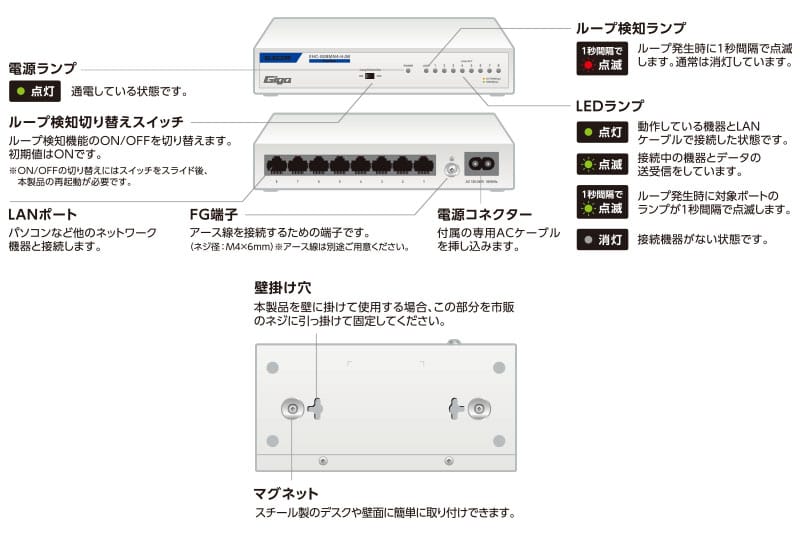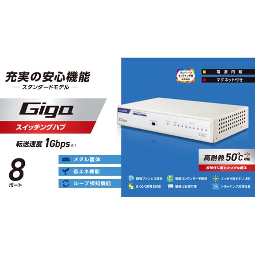 エスコ EA764BY-38C 171.5x 83.6x30mm [8ポート]スイッチングハブ 1個 (ご注文単位1個)【直送品】
