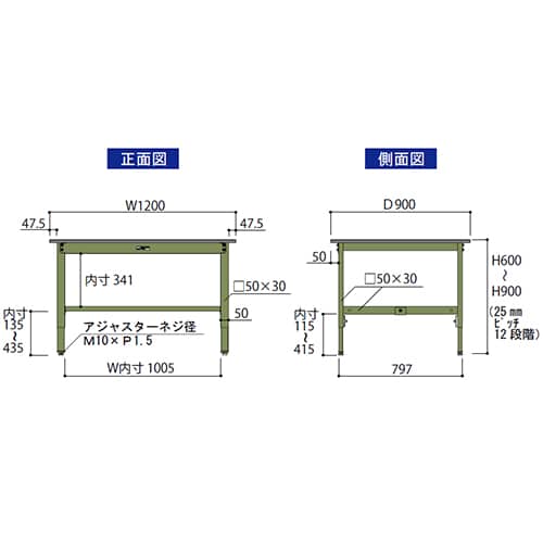 エスコ EA956TD-91 1200x900x600- 900mm ワークテーブル 1台 (ご注文単位1台)【直送品】