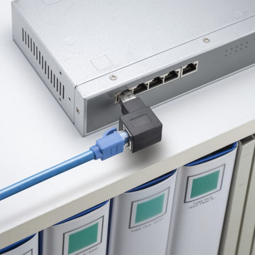 エスコ EA764BM-43 LANケーブルL型左出変換アダプタ(CAT6A STP) 1個 (ご注文単位1個)【直送品】