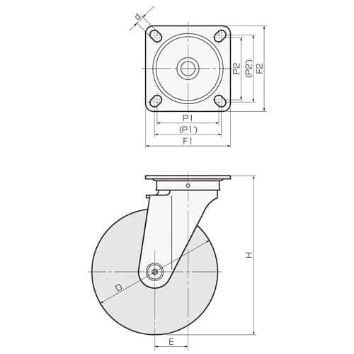 エスコ EA986PN-353 100mm キャスター(ゴム車/自在/ストッパー付/ステンレス製) 1個 (ご注文単位1個)【直送品】