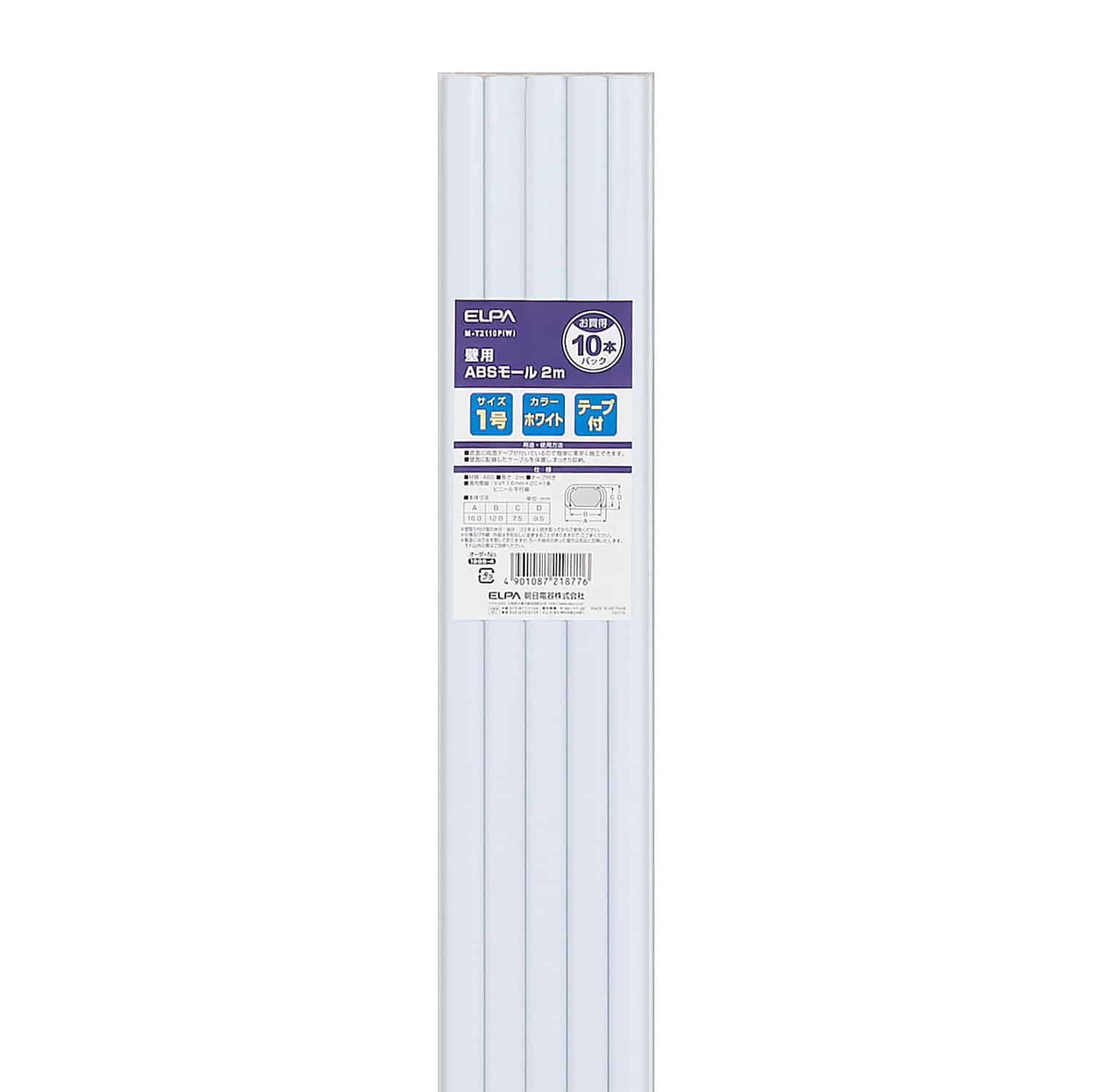 エスコ EA947JC-41A 16mmx2.0m テープ付モール(プラスチック/白/10本) 1袋 (ご注文単位1袋)【直送品】