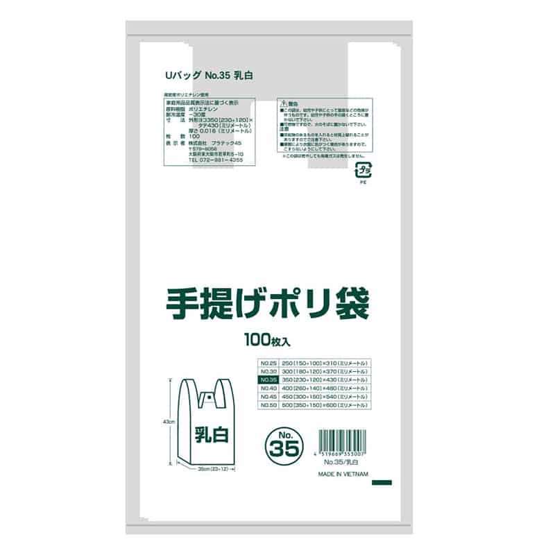 プラテック45 レジ袋 手提げポリ袋 乳白 35号 100枚入 G-U35WN 1冊(ご注文単位30冊)【直送品】
