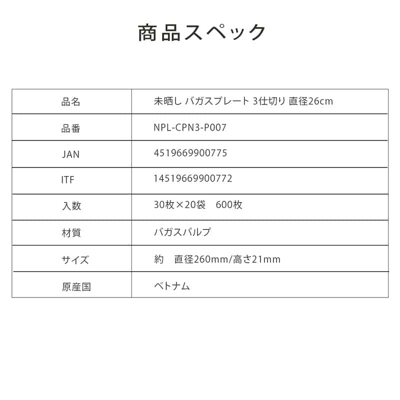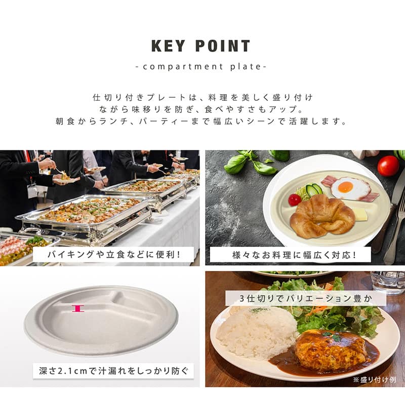 プラテック45 未晒しバガスプレート 3仕切り φ26cm 30枚入 NPL-CPN3-P007 1パック(ご注文単位20パック)【直送品】