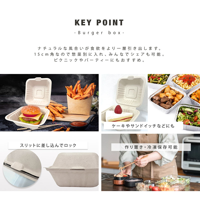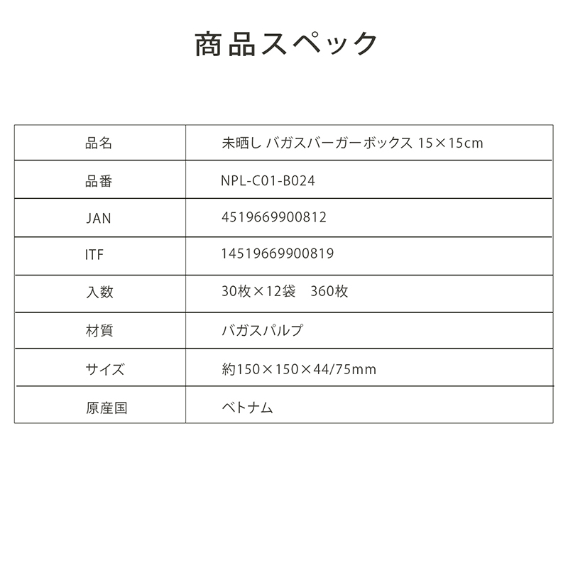 プラテック45 未晒しバガスバーガーボックス 正方形 15×15cm 30枚入 NPL-C01-B024 1パック(ご注文単位12パック)【直送品】