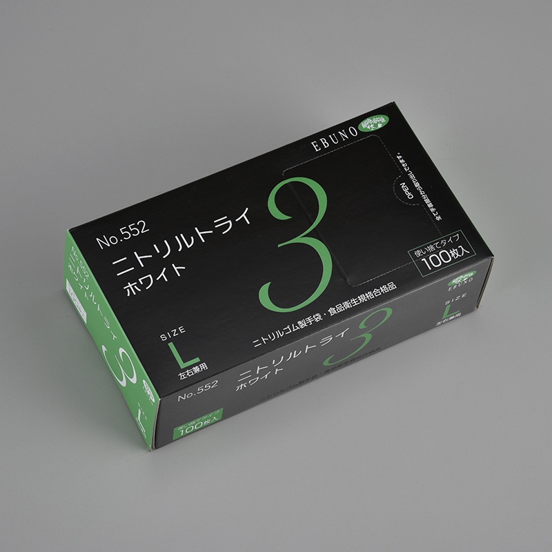 エブノ ニトリル手袋 ニトリルトライ3 粉付 箱入 L 552 ホワイト 100枚/箱(ご注文単位30箱)【直送品】