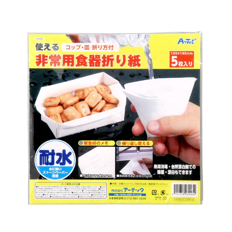 アウトドア・緊急時に威力を発揮。廃棄も簡単で環境にも優しい素材。緊急時のメモに。繰り返し使える1耐水 水に強いストーンペーパー使用酸性のもの(オレンジジュースや炭酸飲料)を入れると、ストーンペーパーの石灰と反応しますので、使用は避けてください。5枚入