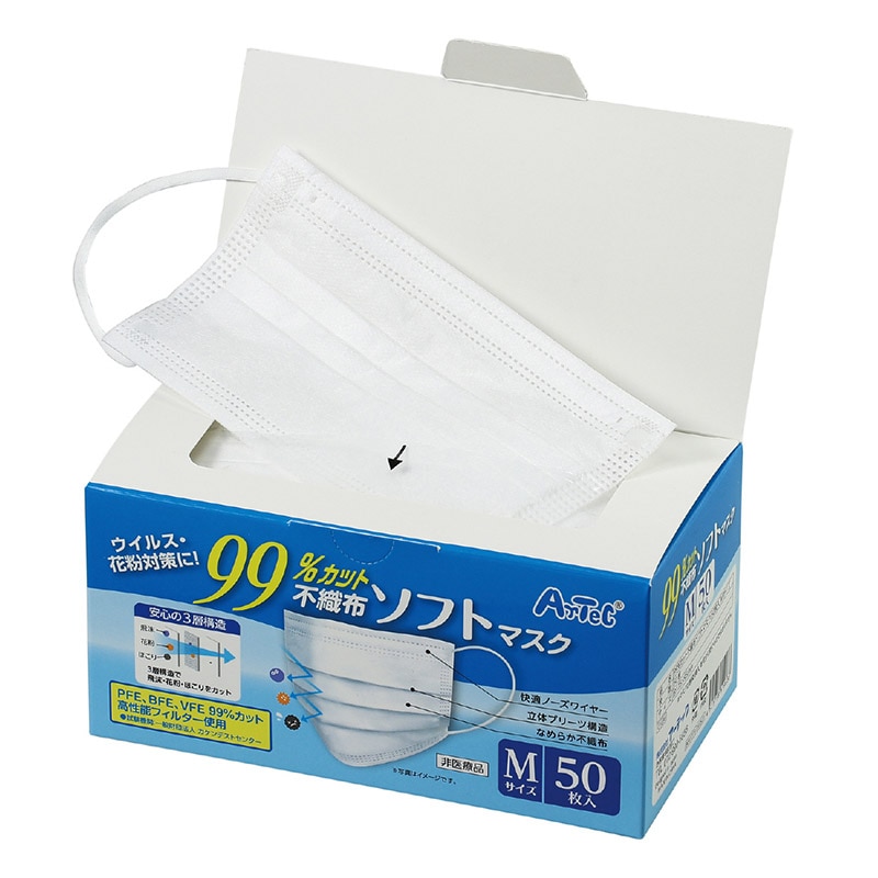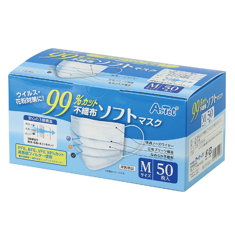 (株) アーテック 99%カット不織布ソフトマスク M 50枚入 1箱(ご注文単位50箱)【直送品】