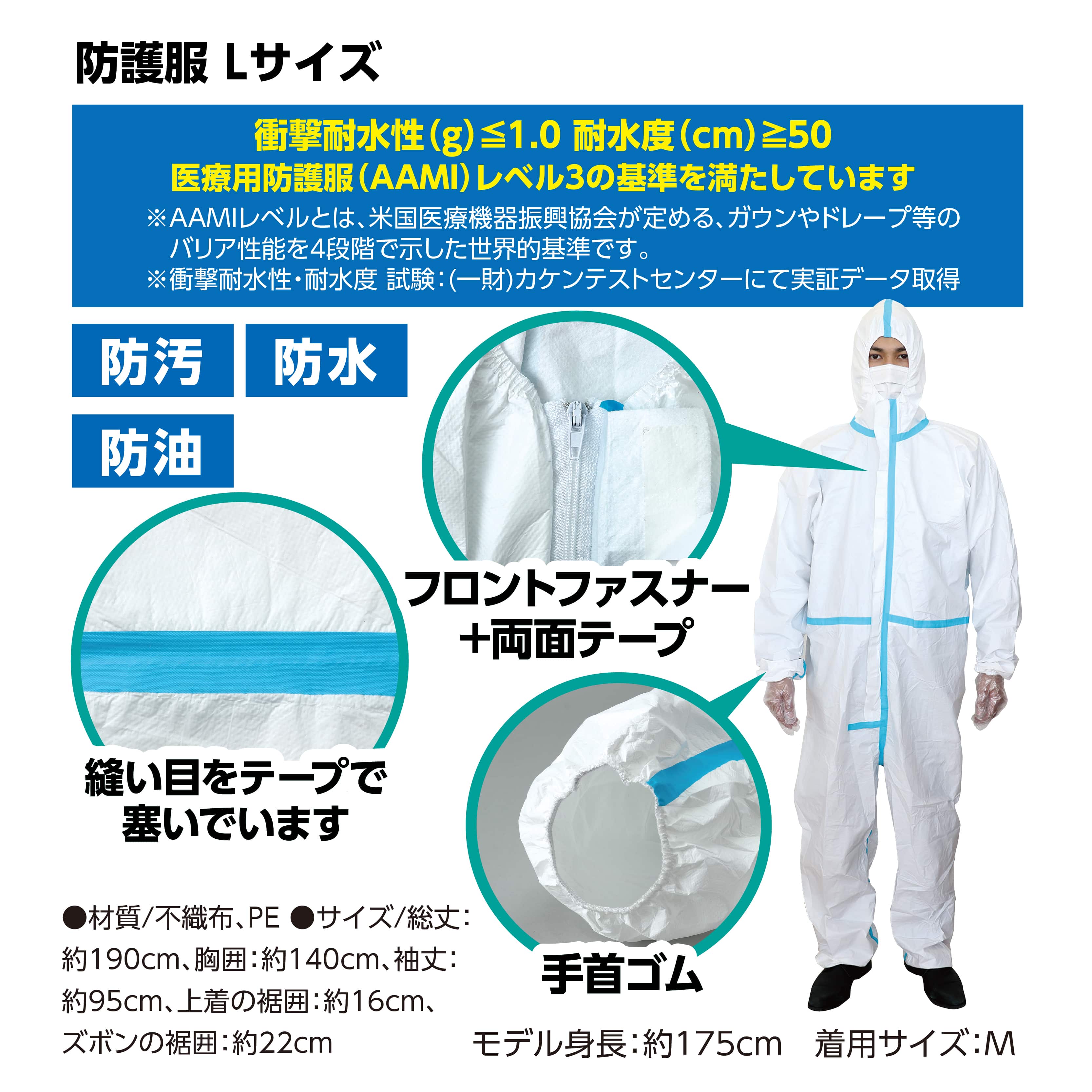 (株) アーテック 防護服 全身保護5点セット L 1セット(ご注文単位100セット)【直送品】