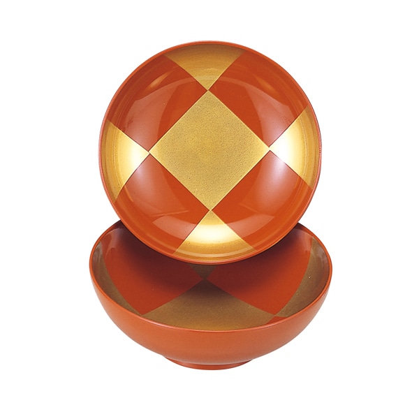福井クラフト 仙才煮物椀 4.5寸 蓋親セット 朱高台内金 見返し市松 12017280 1個(ご注文単位1個)【直送品】