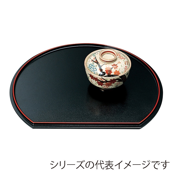 福井クラフト 半月両面盆 耐熱FRP 尺2 ウルミ布目/黒天朱石目 50306850 1枚(ご注文単位1枚)【直送品】