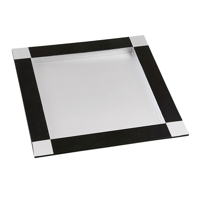福井クラフト 前菜盛皿 7.5寸つば付き正角皿 黒銀天市松内銀 40421050 1個(ご注文単位1個)【直送品】