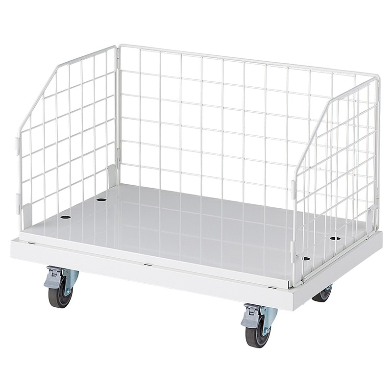 幅広い使い方が可能な、高耐荷重のジャンブルワゴン! 品出しを効率化できる投げ込みワゴンです。様々な陳列に対応する、多機能なワゴンです。●線材/カゴ:φ4mm 枠部分:φ8mm ●重量30kg ●ゴム製単輪キャスター:直径10cm(ストッパー付き・無し×各2個)※キャスターは前面にストッパー付き2個を取り付けてください。●耐荷重:500kg ●お客様組立