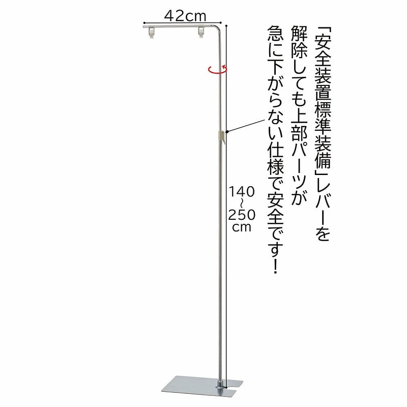 ベース:340×280mm/総高:H1400~2500mm/ハンガ:W400mm