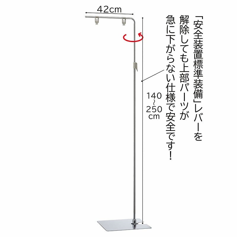 ベース:340×280mm/総高:H1400~2500mm/ハンガ:W400mm
