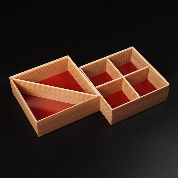 群馬デスコ 2段折 Wタモン柄 赤底 のせ蓋付 上下同一サイズ MO-88 1個(ご注文単位24個)【直送品】