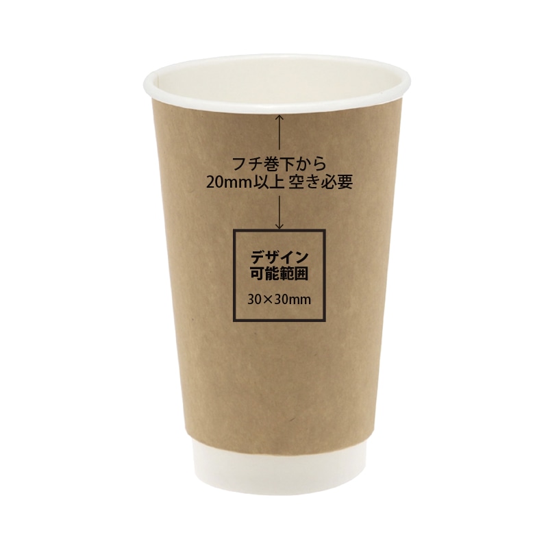 【オリジナル印刷】二重断熱カップ 12オンス 410ml 未晒 フルカラー印刷 3000個