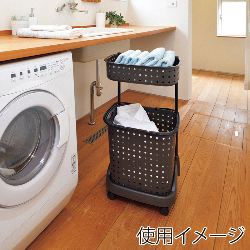 JEJアステージ レクエア ランドリーバスケット 2段 ダークブラウン 1個(ご注文単位4個)【直送品】