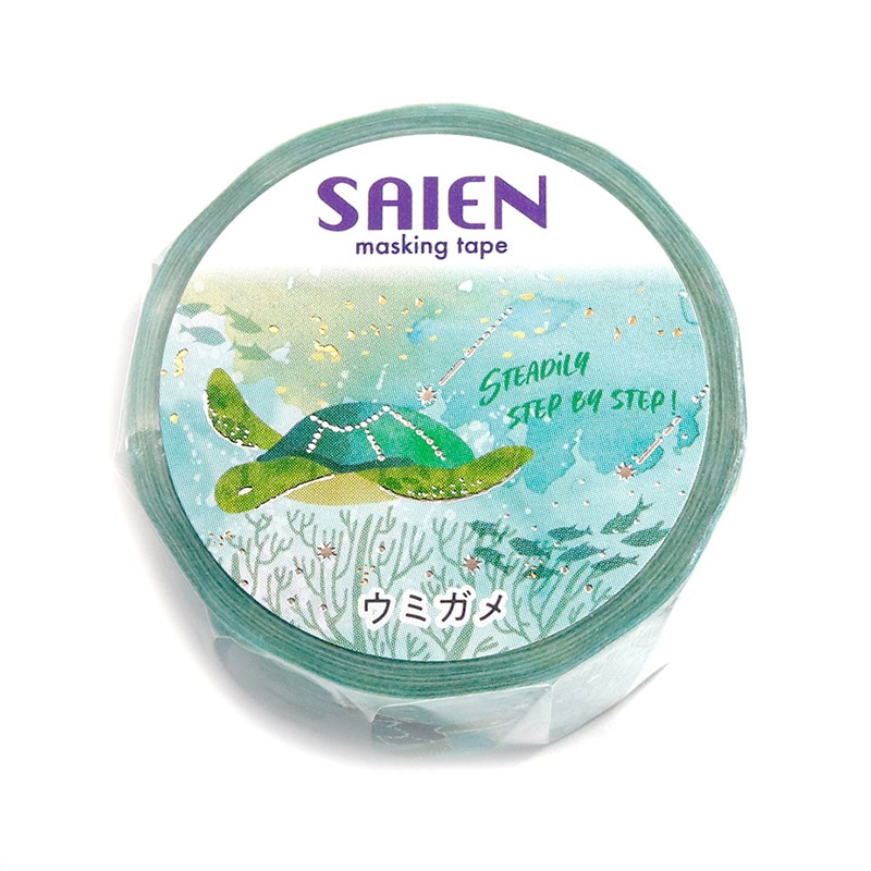 カミイソ産商 SAIEN マスキングテープ Marine Life ウミガメ UR-3120 1巻(ご注文単位1巻)【直送品】