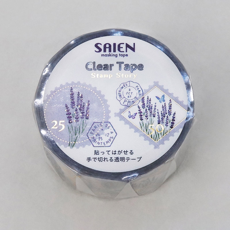 カミイソ産商 SAIEN クリアテープ Stamp story ラベンダー HR-1013 1巻(ご注文単位1巻)【直送品】