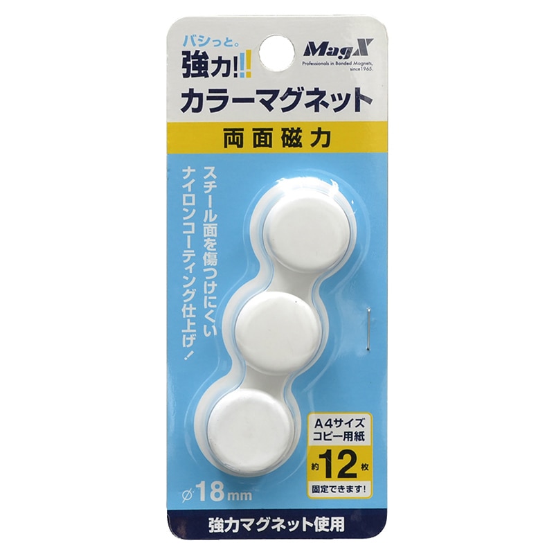 マグエックス 強力カラーマグネット φ18 白 3個入 MFCM-18-3P-W 1個(ご注文単位10個)【直送品】