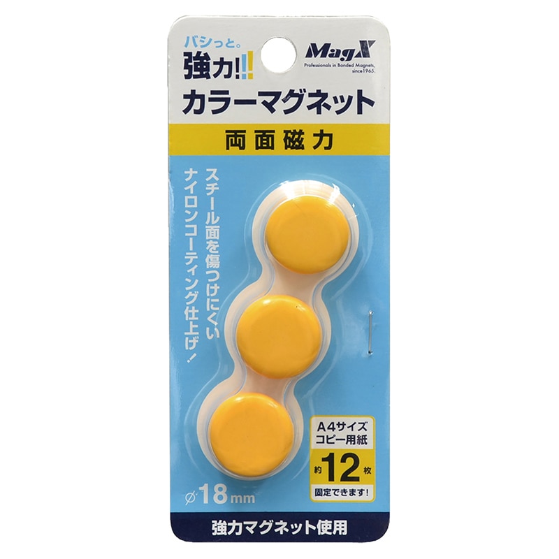 マグエックス 強力カラーマグネット φ18 黄 3個入 MFCM-18-3P-Y 1個(ご注文単位10個)【直送品】