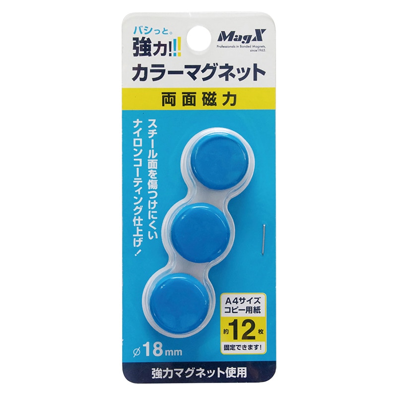 マグエックス 強力カラーマグネット φ18 青 3個入 MFCM-18-3P-B 1個(ご注文単位10個)【直送品】