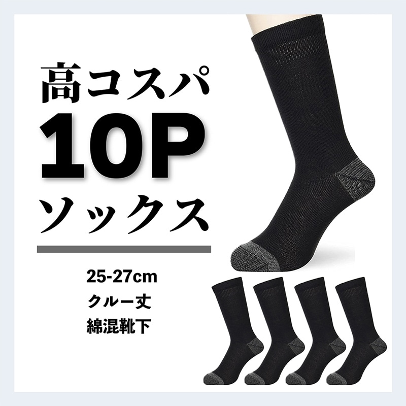 コーコス信岡 綿混軍足 10足組 ERG-2000 ブラック F 1個(ご注文単位1個)【直送品】