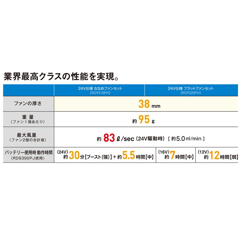 サンエス 空調風神服 フラットハイパワーファンセット RD9320PH 24V仕様 2023年モデル 1個(ご注文単位1個)【直送品】