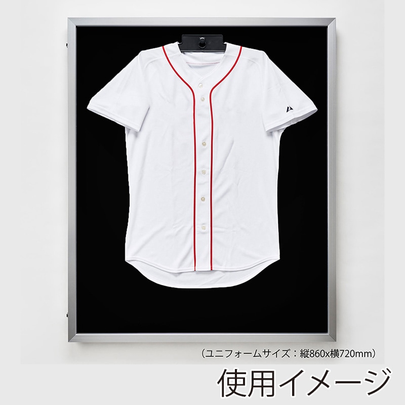 開閉式のため、ユニフォームの掛け替えが前面からできる優れもの。ハンガーも首から通すだけです。LED照明を額縁の中に設置。夜間の空間演出で幅を広げられます。2mの電源コードが付属していますので、コンセントから離れた場所でもご利用いただけます。保管品の外光劣化を防止するUVアクリルモデル。【付属品】黒プラハンガー・フック・吊り金具(縦)・紐・フラットパーツ●前開き式仕様、パチン錠付●LED仕様:LED照明(額縁内上部)/2m電源コード●重さ:約11kg●メーカー品番:16392