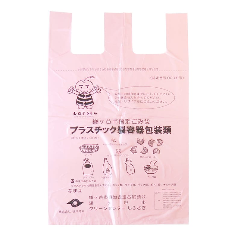 谷津商会 鎌ヶ谷市指定ごみ袋 プラスチック製容器包装類用 Uタイプ ピンク 大 20枚入 KA-PBG 1束(ご注文単位50束)【直送品】