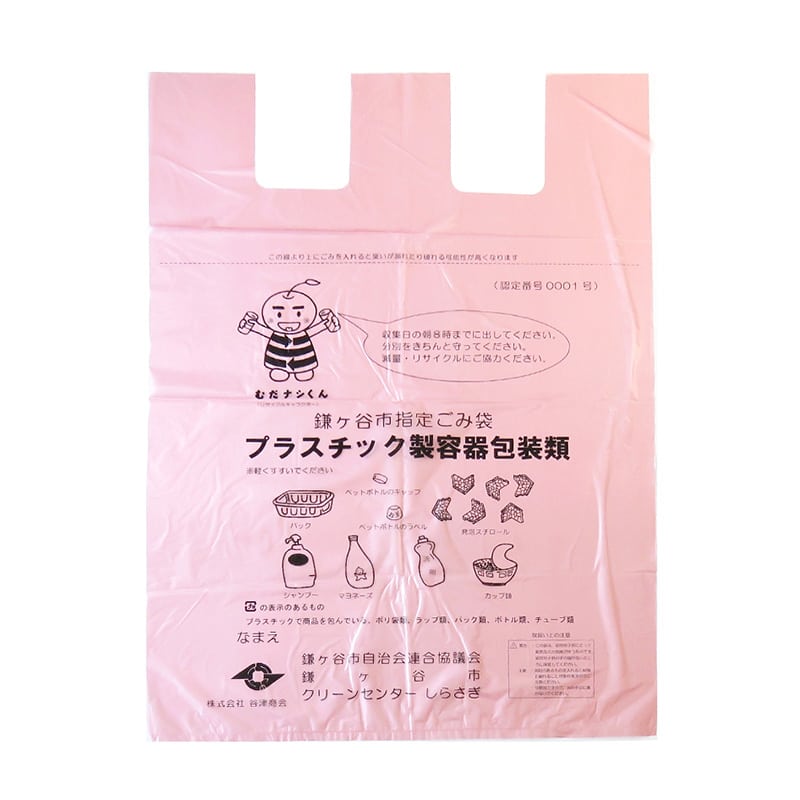 谷津商会 鎌ヶ谷市指定ごみ袋 プラスチック製容器包装類用 Uタイプ ピンク 45L 20枚入 KA-P45 1束(ご注文単位3束)【直送品】